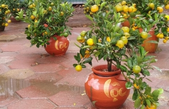 Còn hơn 1 tháng mới đến Tết Nguyên đán Giáp Thìn nhưng hầu hết vườn quất tại làng quất Cẩm Hà (TP. Hội An) đã được các thương lái đặt cọc để mua hết vườn.